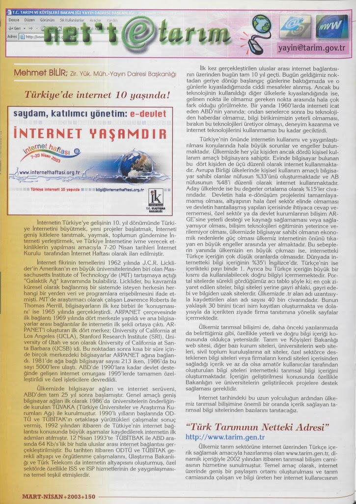 İlk kez gerçekleştirilen uluslar arası internet bağlantısının üzerinden bugün tam 10 yıl geçti. Bugün geldiğimiz noktadan geriye dönüp başlangıç günlerine baktığımızda ve o günlerle kıyasladığımızda ciddi mesafeler alınmış. Ancak bu teknolojinin kullanıldığı diğer ülkelerle kıyaslandığında ise, gelinen nokta ile olmamız gereken nokta arasında hala çok fark olduğu görülmekte. Bir yanda 1960’larda interneti icat eden ABD’nin yanında; ondan senelerce sonra bu teknolojiden haberdar olmamız, bilgi birikimimizin yeterli olmaması, bırakın bu teknolojileri üretiyor olmayı, deneyim kazanma ve internet teknolojilerini kullanmamızı bu kadar geciktirdi.
