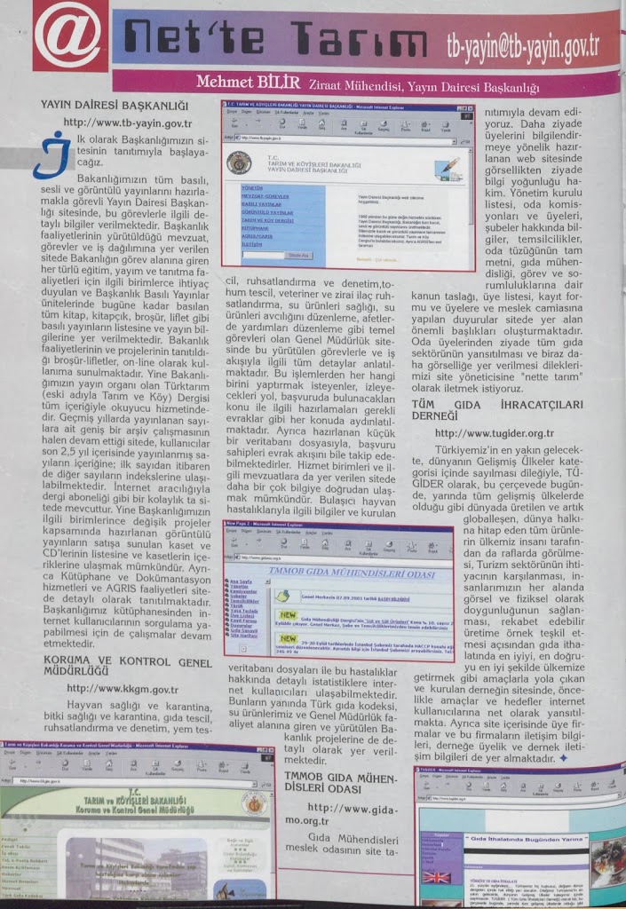 Gıda Mühendisleri meslek odasının site tanıtımıyla devam ediyoruz. Daha ziyade üyelerini bilgilendirmeye yönelik hazırlanan web sitesinde görsellikten ziyade bilgi yoğunluğu hakim. Yönetim kurulu listesi, oda komisyonları ve üyeleri, şubeler hakkında bilgiler, temsilcilikler, oda tüzüğünün tam metni, gıda mühendisliği, görev ve sorumluluklarına dair kanun taslağı, üye listesi, kayıt formu ve üyelere ve meslek camiasına yapılan duyurular sitede yer alan önemli başlıkları oluşturmaktadır. Oda üyelerinden ziyade tüm gıda sektörünün yansıtılması ve biraz daha görselliğe yer verilmesi dileklerimizi site yöneticisine “nette tarım” olarak iletmek istiyoruz.